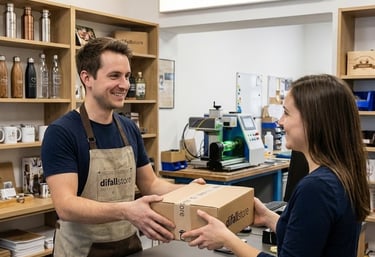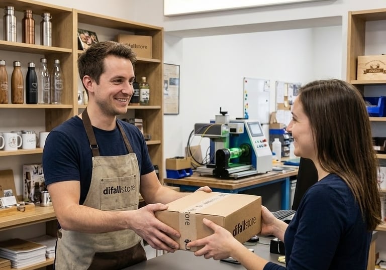 Trabajamos de la mano con un Equipo capacitado en Personalización en diferentes técnicas, tales como: Grabado láser de fibra , grabado láser co2, serigrafia 1 color , Dtf uv.